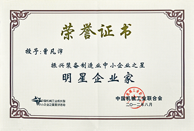 2012年8月8日,由中國機械工業聯合會主辦的“中國機械工業成長型中小企業之星宣講活動報告會”在北京舉行,來自全國各地200多位企業家、政府相關部門和中國機械工業聯合會的領導、業內專家、經濟學者參加了會議。我司榮獲“中國振興裝備制造業中小企業之星”明星企業稱號,公司董事長曾凡沛榮獲“中國振興裝備制造業中小企業之星”明星企業家稱號。