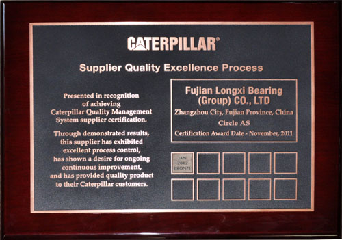 另悉,我司剛剛獲得卡特彼勒公司“2012年優秀供應商SQEP金牌”,預計將于2013年進行授牌。