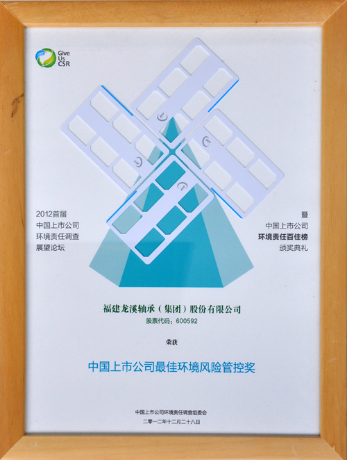 2012年12月28日,首屆中國上市公司環境責任展望論壇暨中國上市公司環境責任百佳頒獎典禮在北京舉行。我司發布的2010年度CSR報告入圍初選;經組委會專家組專業委員綜合評審,認為我司對生態文明建設有明確貢獻,環境責任管理相對領先,并經過公眾、股民及47家環保NGO公示后,入選“中國上市公司環境責任百佳企業榜”,榮獲“中國上市公司最佳環境風險管控獎”。