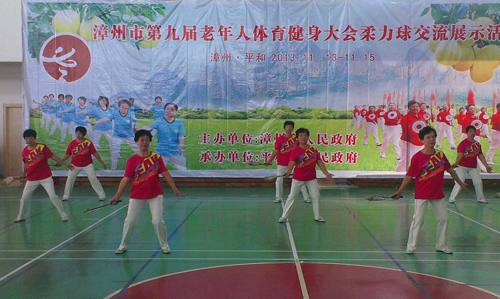 2013年11月15日,市第九屆老年人體育健身大會第二階段柔力球交流展示活動在平和縣正興學校體育館圓滿結束。整個交流活動洋溢在其樂融融的氛圍之中,老年朋友們各個神采奕奕、容光煥發,場上時不時傳來一陣陣掌聲喝彩。公司退休員工朱金蘭、洪亞珍等組成的經貿代表隊也參加了此次比賽,并用她們整齊優美的動作和精湛的技藝奪得本次比賽的銅獎。