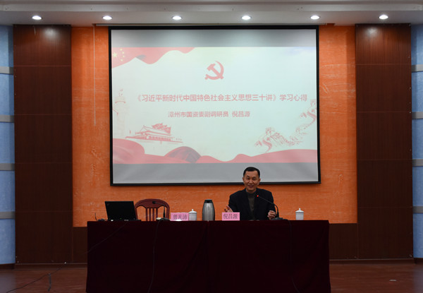 為進一步興起習近平新時代中國特色社會主義思想 “大學習”熱潮,2018年12月28日晚,龍軸集團在俱樂部會議室組織開展專題黨課講座。集團黨委書記、董事長曾凡沛作了題為《充分認識政治建設是黨的建設的首要建設》專題黨課,同時邀請漳州市國資委副調(diào)研員倪昌源講授《<習近平新時代中國特色社會主義思想>三十講學習心得》。集團高管、各黨總支、黨支部書記及支委、中層以上管理人員共130余人參加了黨課學習。