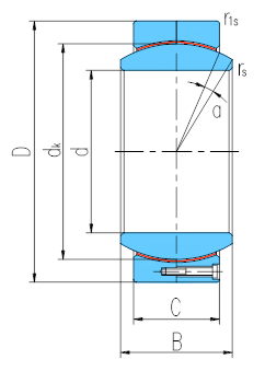 產(chǎn)品特點:外圈徑向分為兩半,用螺釘鎖緊,材料為碳鋼,磷化,球面粘貼PTFE編織物;內(nèi)圈材料為軸承鋼,淬火,球面鍍硬鉻。