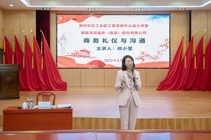 為進一步提升職能部門技術管理人員綜合職業(yè)能力,塑造龍軸集團良好形象,在市總工會的大力支持下,公司于3、4月開展2023年度職工素質提升公益大講堂暨政務、商務禮儀知識專題培訓,邀請國際認證形象顧問、國家高級政務禮儀指導師、國際注冊高級禮儀培訓師陳燕和漳州城市職業(yè)學院副教授、國家認證一級形象設計師鄭小瑩分別進行政務禮儀和商務禮儀培訓。公司領導及相關職能部門人員參加。