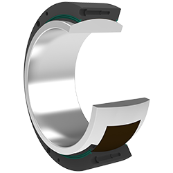 產品編號:GE...ETL-2RS?15~120??????????GE...XTL-2RS?140~300 滑動磨擦副:鋼/PTFE編織物 產品特點:外圈有一道軸向縫,兩端帶有密封圈,材料為軸承鋼,淬火,磷化,球面粘貼PTFE編織物;內圈材料為軸承鋼,淬火,球面鍍硬鉻。型號后置代號為XTL,表示外圈沿軸向剖分成...