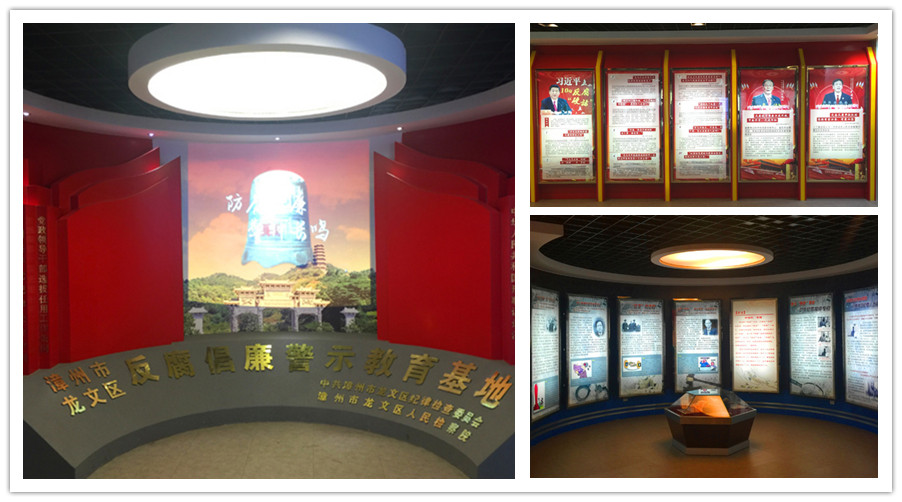 ????警示教育基地分為“諄諄教誨”、“黨紀(jì)國(guó)法”、“反腐鑒錄”、“源頭防范”四大主題展區(qū)。以豐富翔實(shí)的文字和圖片資料,采用現(xiàn)代聲、光、電技術(shù)手段,系統(tǒng)展示了反腐倡廉建設(shè)的歷史進(jìn)程。其中,“諄諄教誨”展區(qū)展示了黨和國(guó)家領(lǐng)導(dǎo)人提出的黨風(fēng)廉政建設(shè)的重要思想和論斷,為反腐工作指明了方向;“反腐鑒錄”展區(qū)呈現(xiàn)的是 “打虎拍蠅”的成果。從周永康、周本順、蔣潔敏等倒下的“老虎”,到漳州市的貪腐人員莊水秋、嚴(yán)玉杰等打掉的“蒼蠅”, 既反映了近年來(lái)懲治腐敗的豐碩成果,也彰顯了重拳反腐的堅(jiān)強(qiáng)決心。同時(shí)通過(guò)從古至今正面廉政先進(jìn)人物事跡展示,與貪腐人員形成強(qiáng)烈對(duì)比,更加令人警醒。最后的“源頭防范”展區(qū),以柴米油鹽醬醋茶比喻預(yù)防職務(wù)犯罪七件事,警示廣大黨員干部防微杜漸,勿因貪婪而迷失初心。