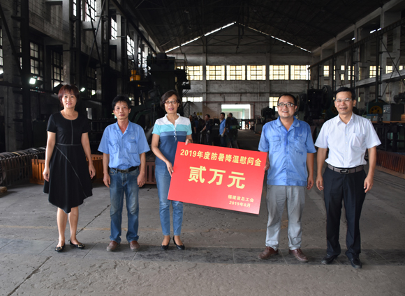 在慰問(wèn)現(xiàn)場(chǎng),曾凡沛詳細(xì)介紹了公司圍繞職工高溫安全生產(chǎn)、職業(yè)健康開展的各項(xiàng)安全防護(hù)及職工防暑降溫慰問(wèn)活動(dòng)等工作,慰問(wèn)團(tuán)一行親切地看望了生產(chǎn)現(xiàn)場(chǎng)員工,并送上防暑降溫慰問(wèn)經(jīng)費(fèi)2萬(wàn)元。