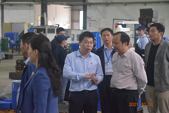 ▲龍軸集團(tuán)永軸公司黨委書(shū)記、董事長(zhǎng)吳岳彬陪同三明市總工會(huì)、永安市總工會(huì)、三明埔?guī)X汽車(chē)工業(yè)園區(qū)管委會(huì)領(lǐng)導(dǎo)參觀永軸公司廠區(qū)并詳細(xì)介紹數(shù)控磨加工及智能檢測(cè)連線設(shè)備情況