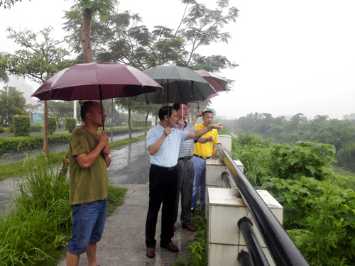 ????2017年6月3日上午,大雨如注。公司總經理陳晉輝、副總經理康安偉率領防汛抗洪搶險巡邏隊部分成員前往公司防洪防汛責任堤段——西溪康山土堤(起止樁號0+750~2+250)進行防汛安全巡查。